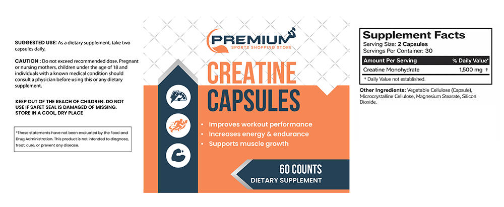 5 bottles Creatine Capsules (60 Capsules per bottle)